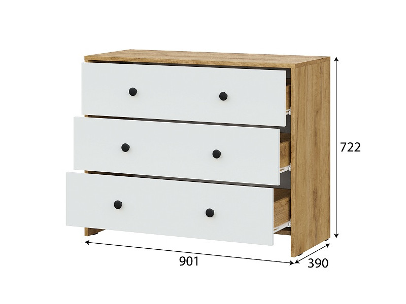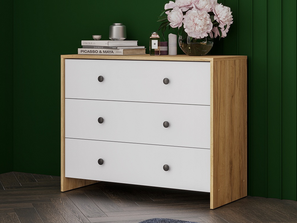 - Комод 3 ящика Дольче Дуб Золотой/Белый