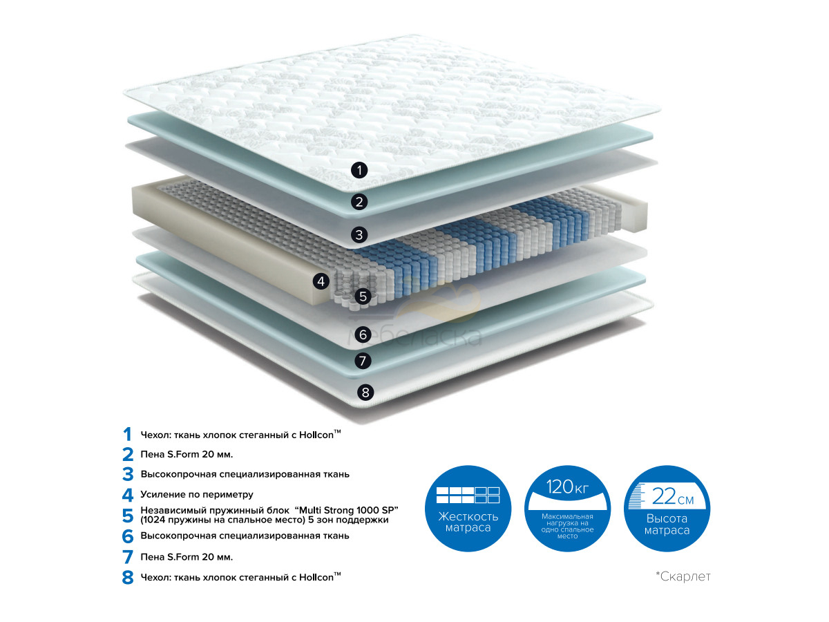 - Матрас Scarlet ширина 1800