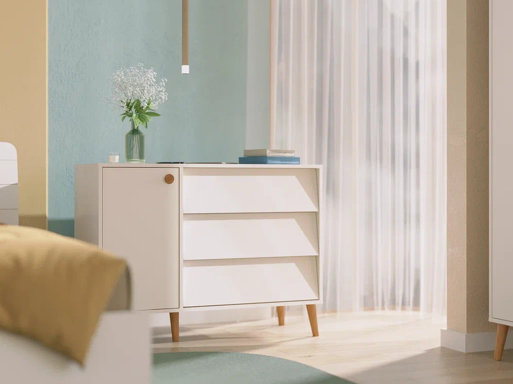 - Комод с дверкой и тремя ящиками ( 1100*453*830Н мм) ( 0,083 м3; 49,6 кг)