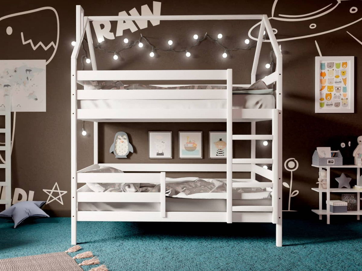 - Двухъярусная кровать-домик белый 80х160 см