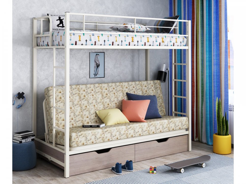 Двухъярусная кровать с диваном Мадлен ЯЯ Слоновая кость пифагор