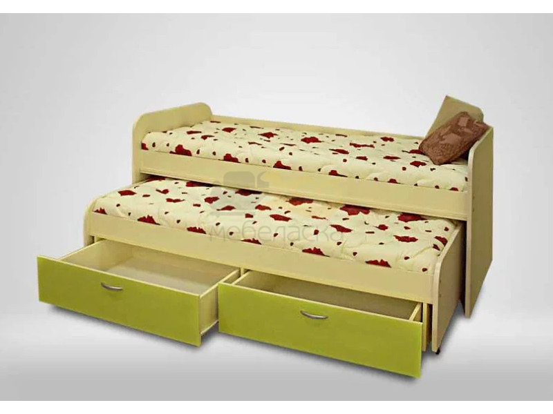 Двухъярусная кровать «Антошка» - компактное спальное место для двоих детей. Нижних ярус выдвигается на роликовых опорах и имеет два вместительных короба для белья и игрушек.