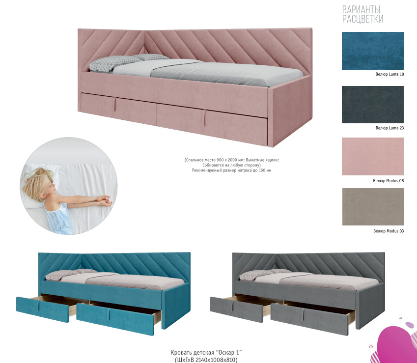 - Кровать Оскар-1 велюр luma 18