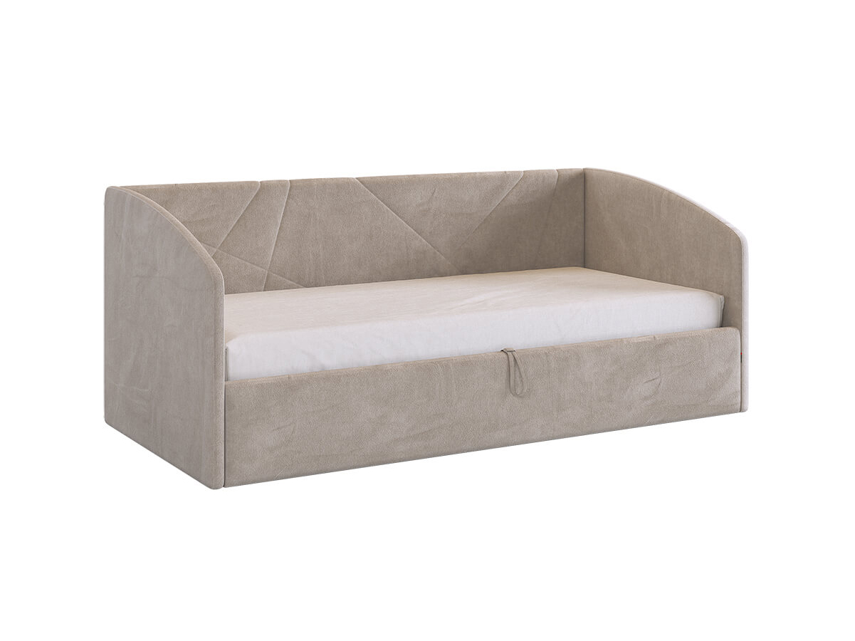 Основание подъемное входит в комплект кровати, петелька для подъема в цвет ткани на корпусе. Кровать имеет огромный ящик для хранения.