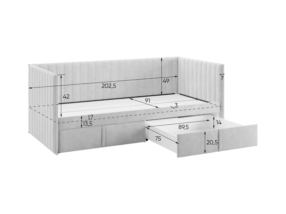 Кровать-софа с ящиками Твикс цвет велюра мята