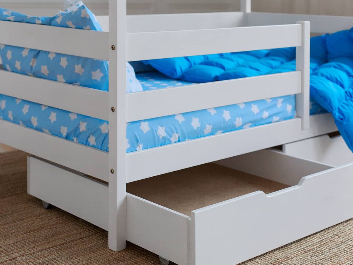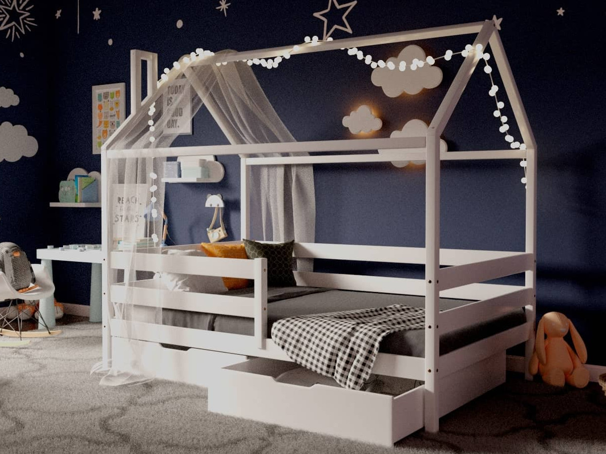 - Кроватка-Домик белый 80х160 см с ящиками