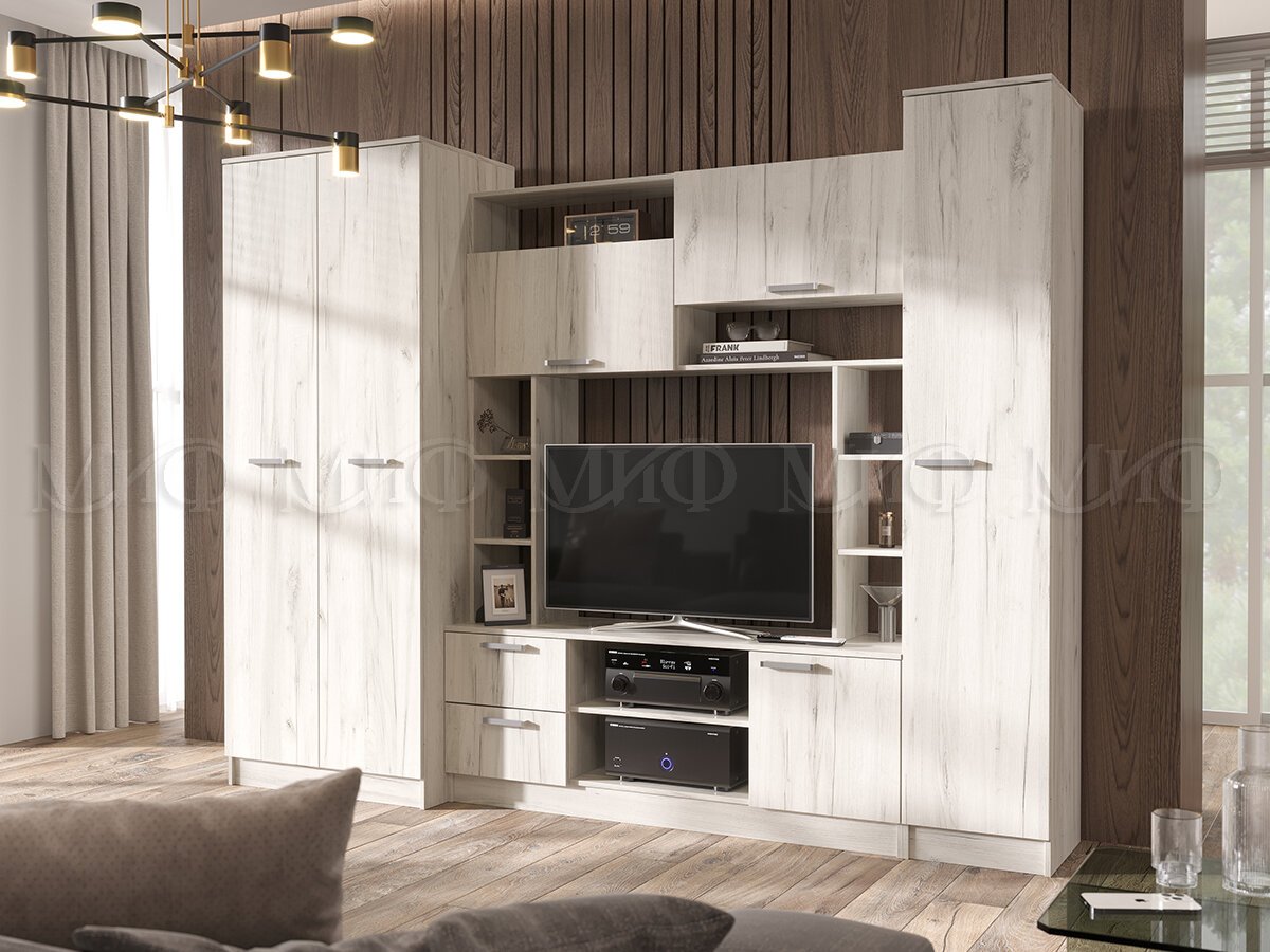 - Гостиная Флора без зеркала Дуб Крафт Белый