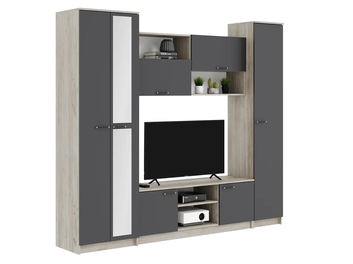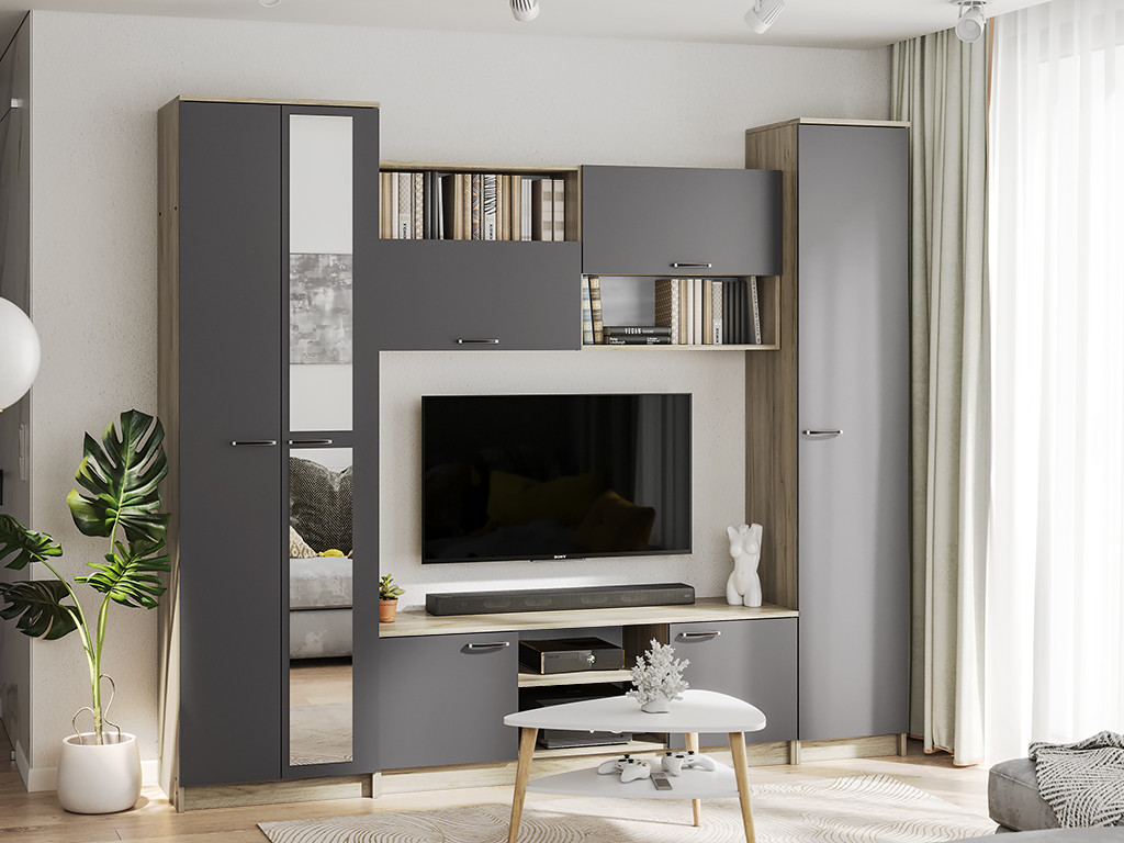 Гостиная навесная Флэш Браш Графит, Дуб Крафт