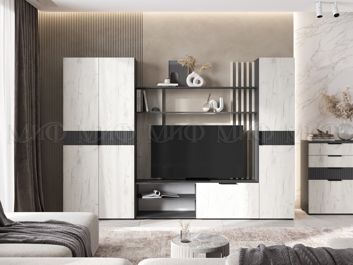 Гостиная модульная Роджина Дуб Крафт Белый, Графит