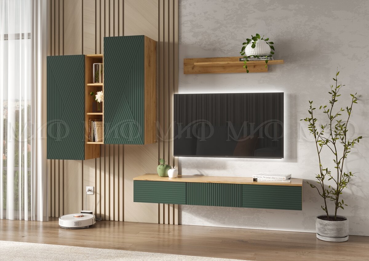 - Гостиная навесная Флэш Браш Мени Грин, Дуб Крафт