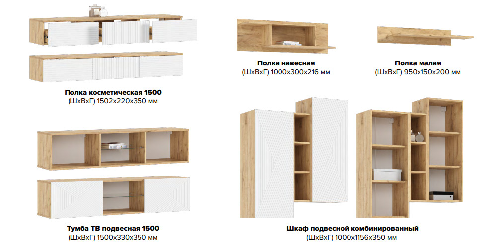 Цена за комплект: Полка косметическая, Полка малая, Шкаф подвесной комбинированный
