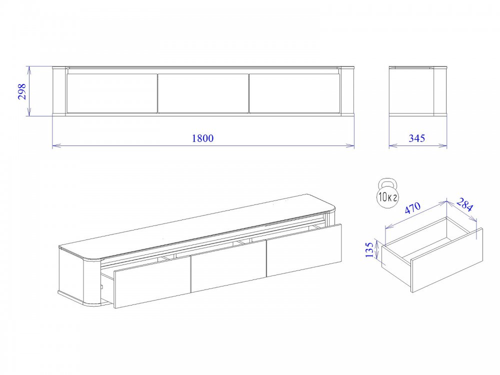 Размер ШхГхВ: 1800*345*298 мм