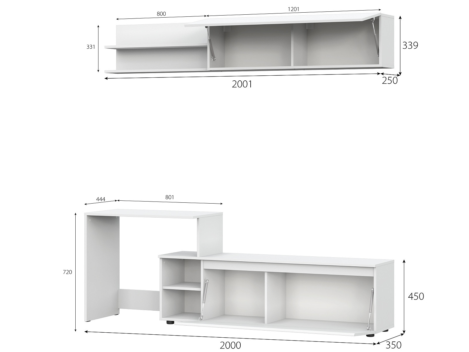- Низ: 2000 х 720 х 350 мм.