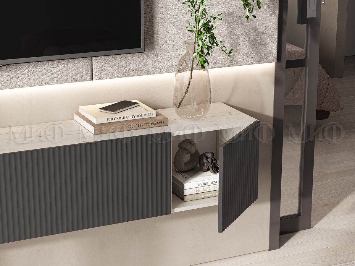 - Тумба под ТВ 2000 Оскар Графит Софт, Дуб Крафт Белый