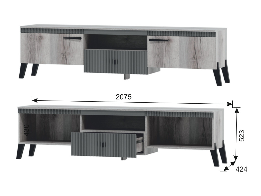 - Тумба ТВ №1 с ножками Ольга 3 дуб коми