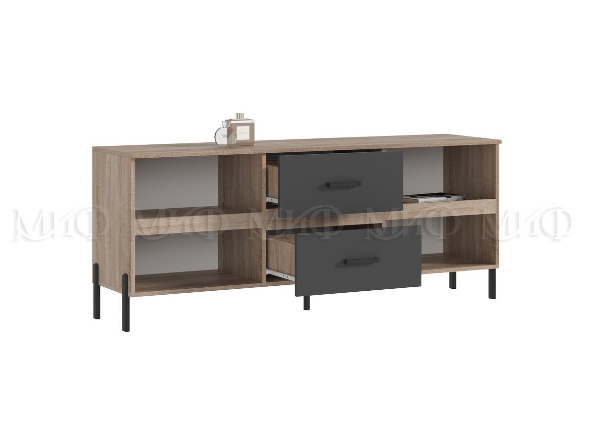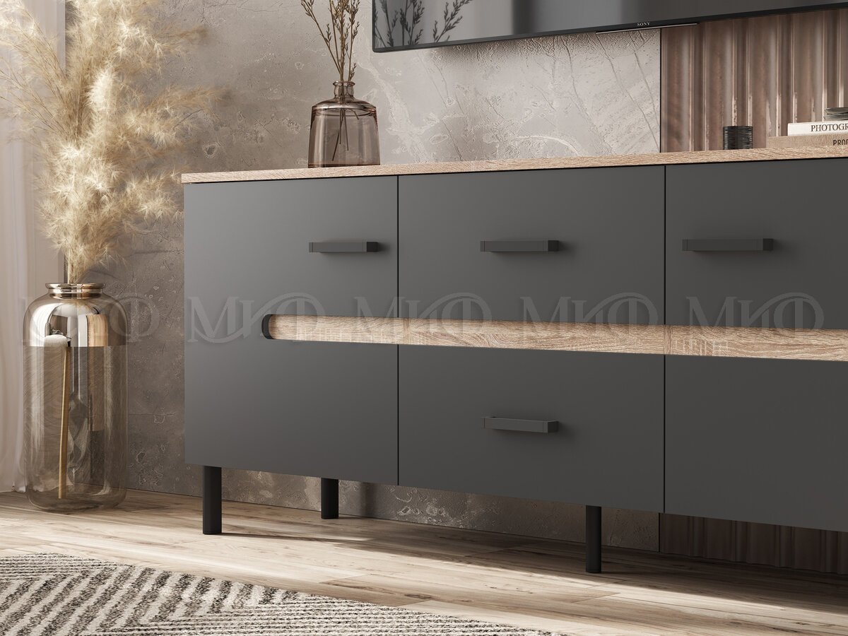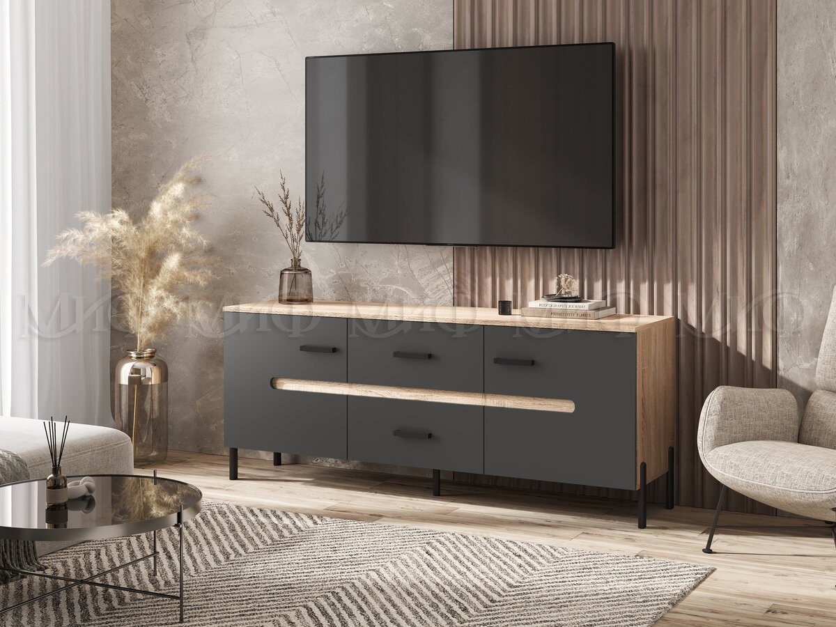 - Тумба ТВ (металл) Ким Графит Софт, Дуб Сонома