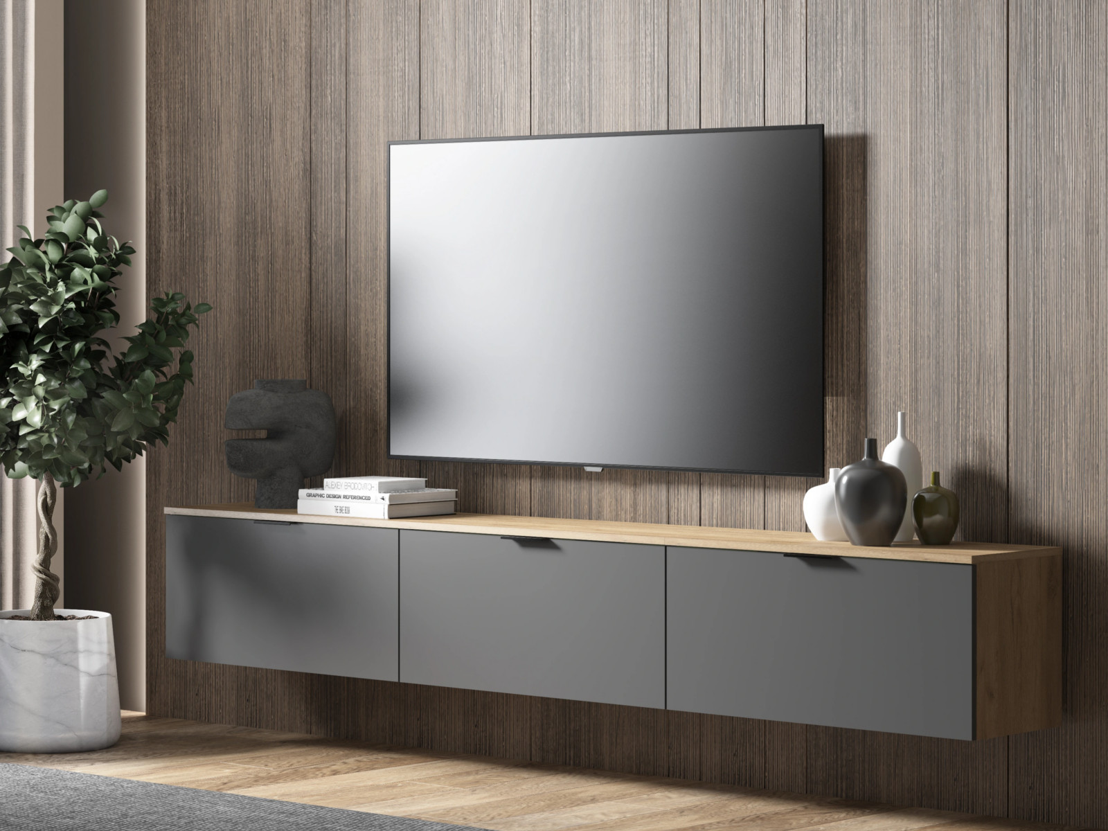 - Тумба ТВ Осло М23 ручка торцевая Дуб золото/Графит Софт