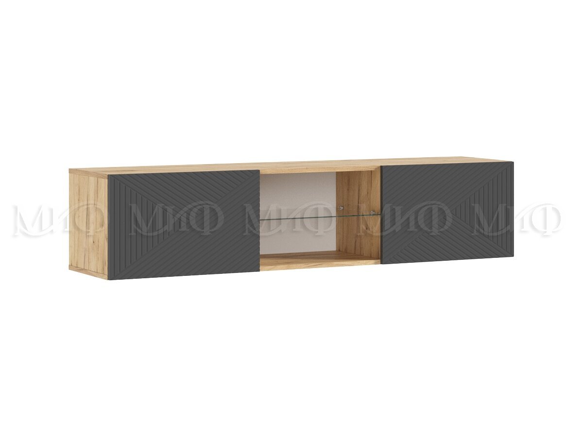 - Тумба ТВ подвесная 1500 Флэш Браш Графит, Дуб Крафт