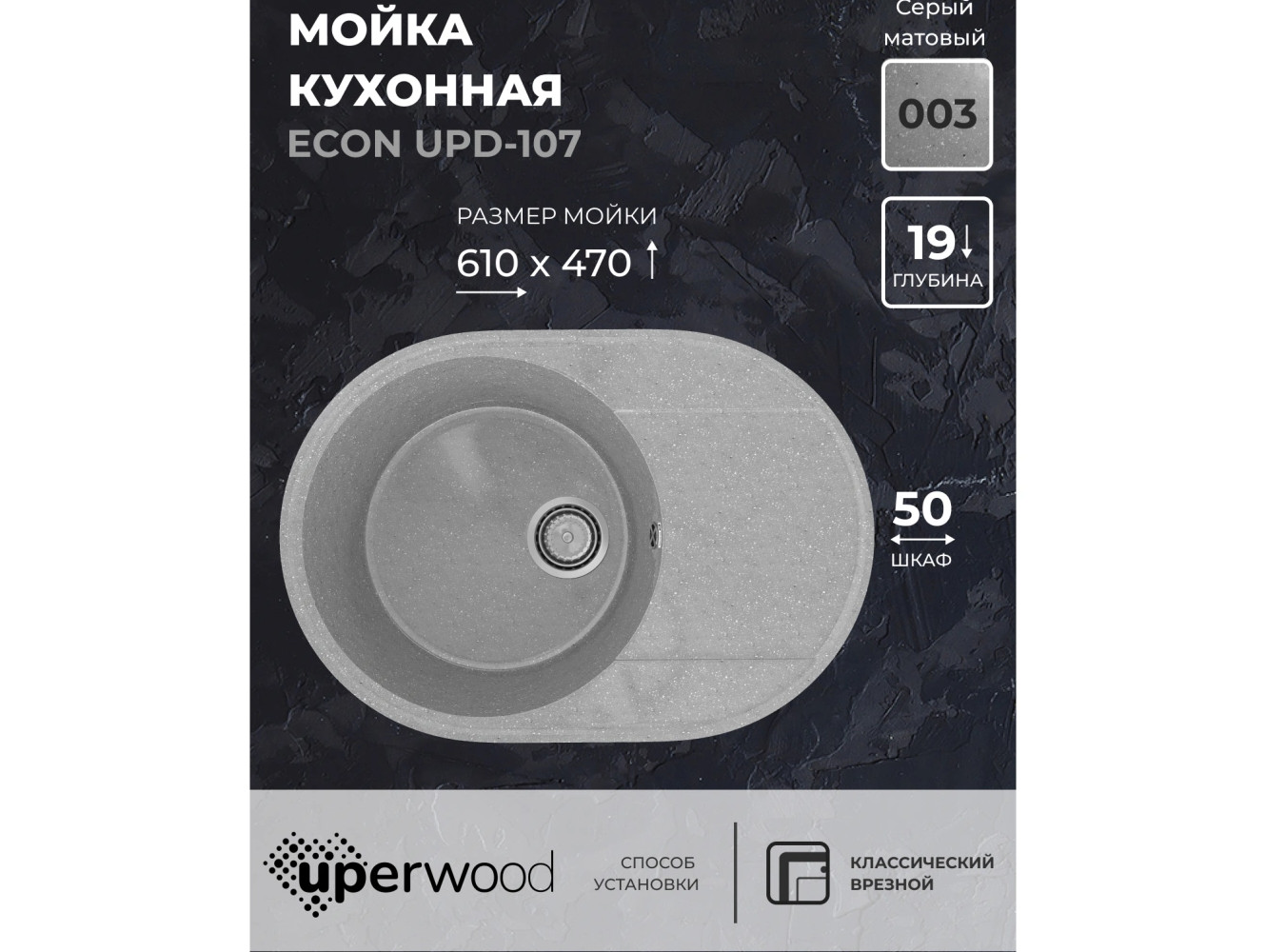 - Кухонная мойка Uperwood ECON UPD-107-003 серая матовая