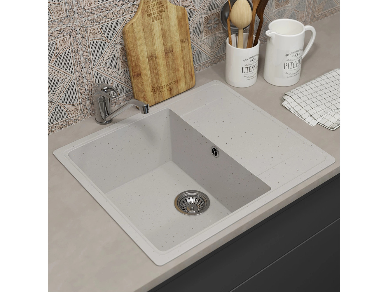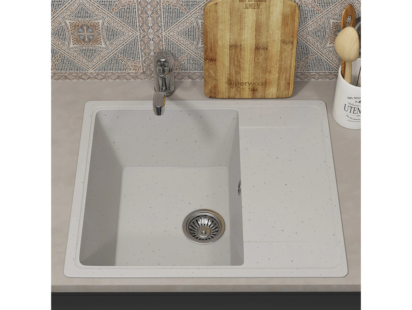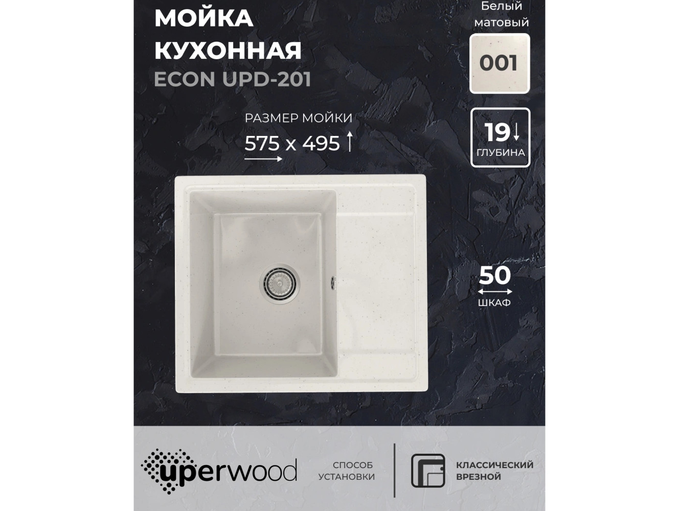 - Кухонная мойка Uperwood ECON UPD-201-001 белая матовая