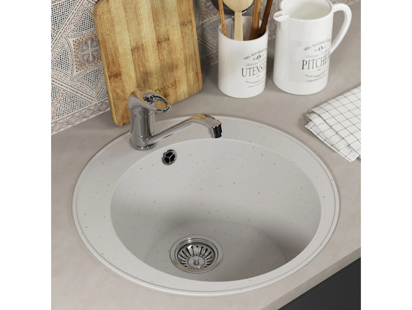 - Кухонная мойка Uperwood ECON UPD-405-001 белая матовая