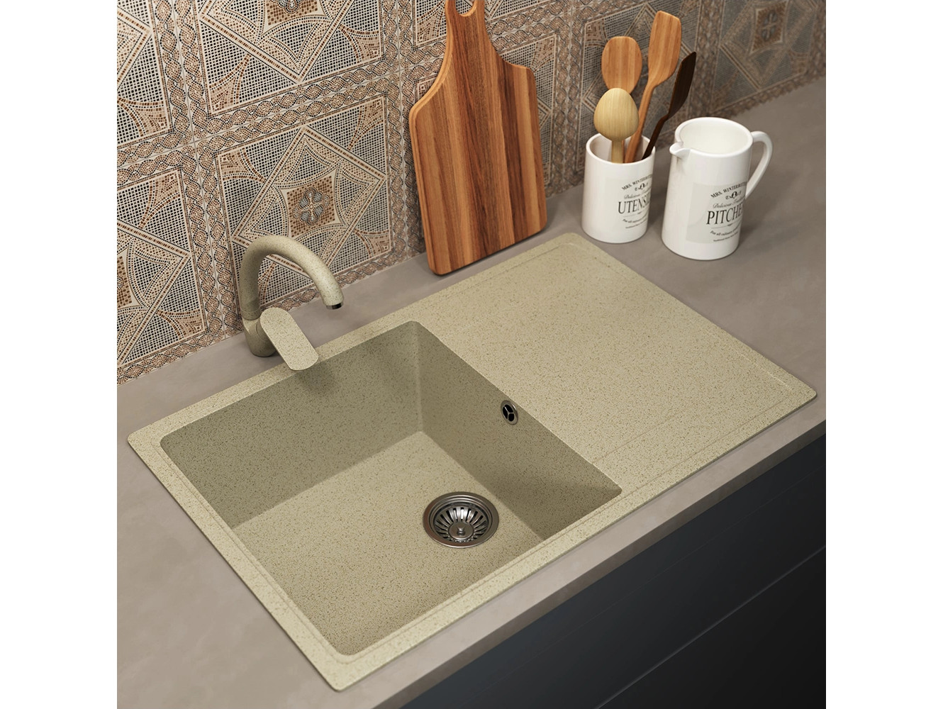 - Кухонная мойка Uperwood ECON UPD-507-002 бежевая матовая