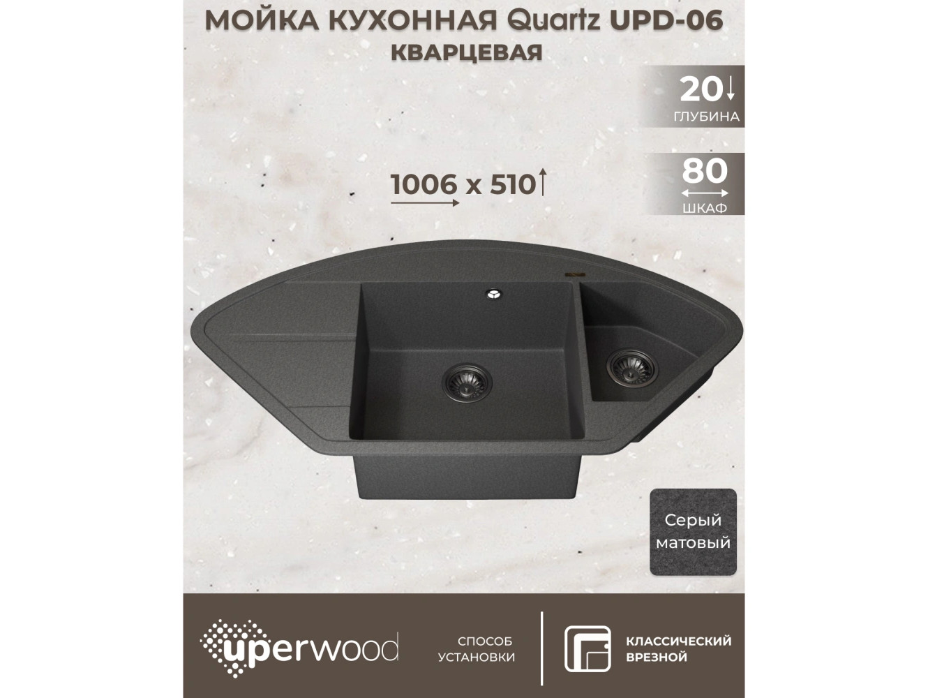 - Кухонная мойка Uperwood Quartz UPD-06-03 серая матовая