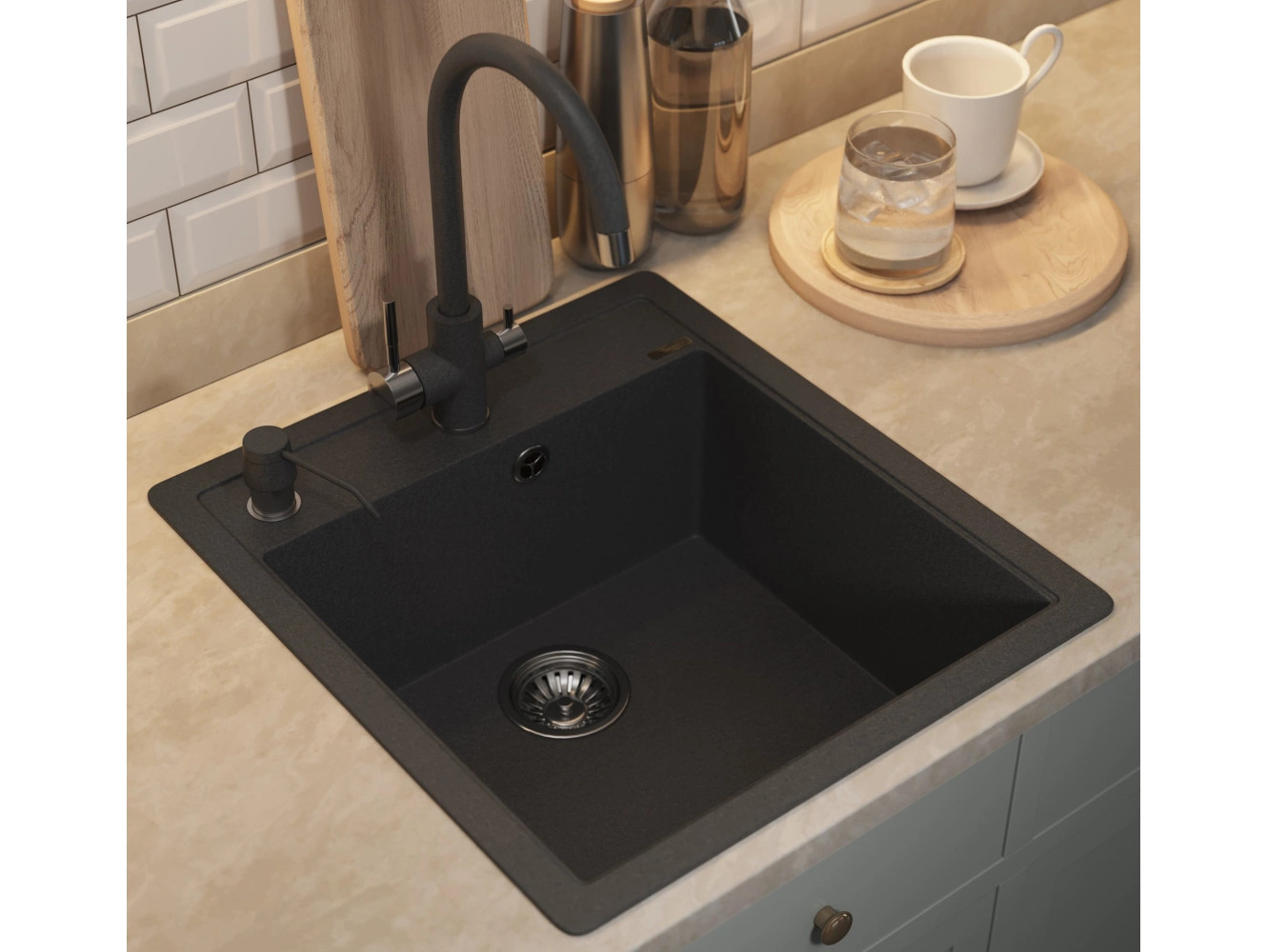 - Кухонная мойка Uperwood Quartz UPD-07-04 черная матовая