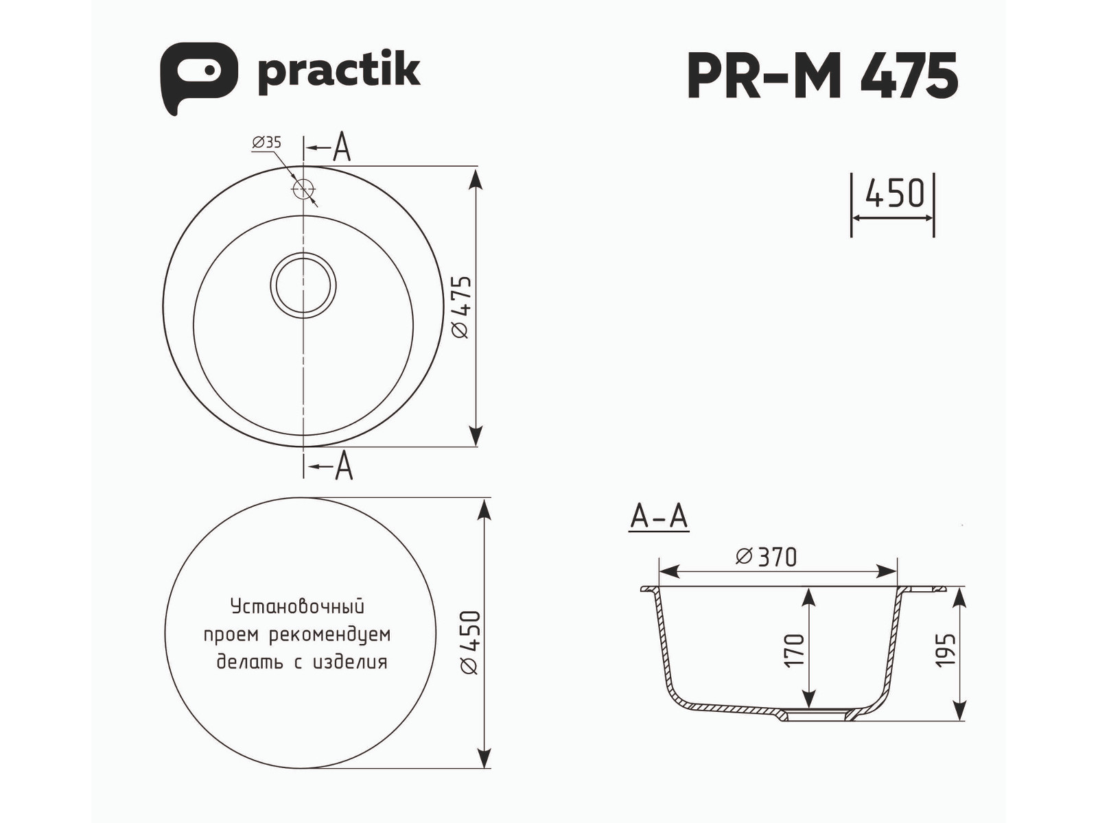 Установочный проем: ø 450 мм