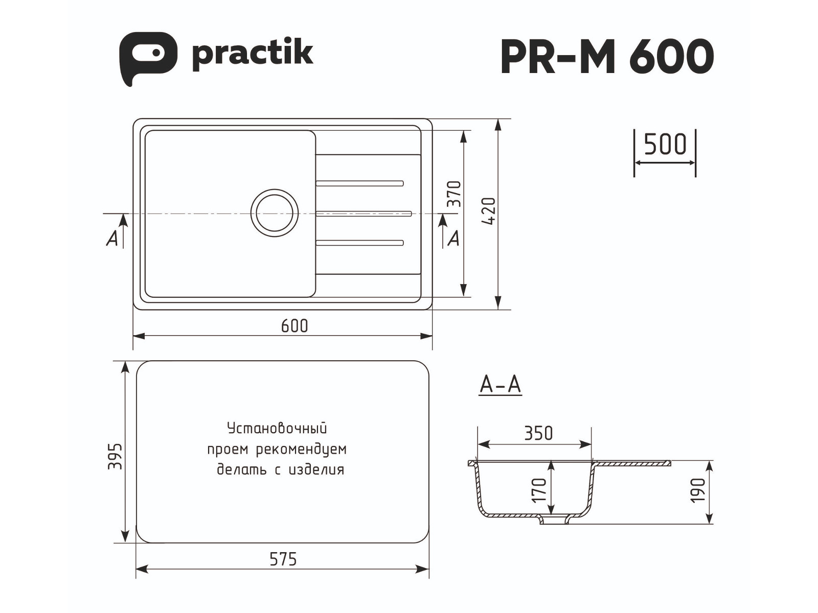 Мойка Practik PR-M 600-004 черный оникс