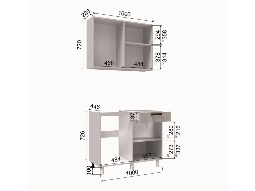 - Высота верхних шкафов, мм 720