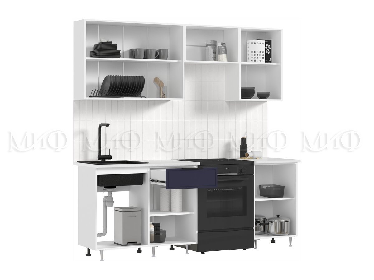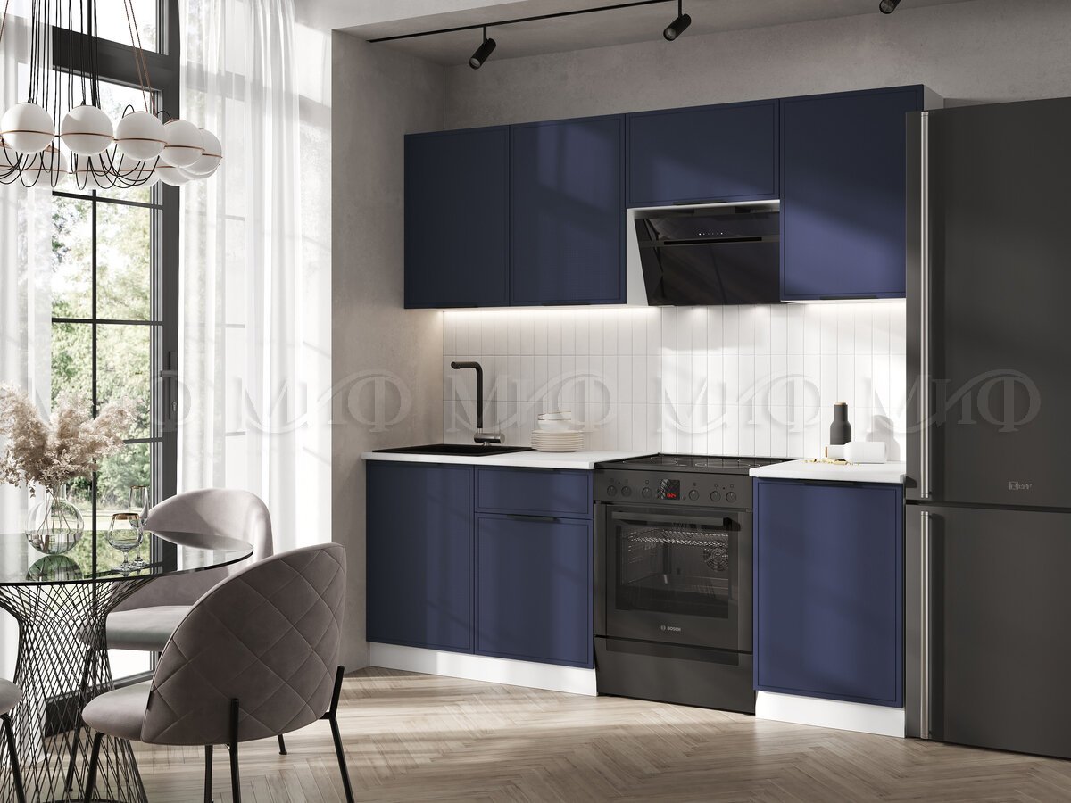 - Кухня Николь 2100 мм Холст сапфировый