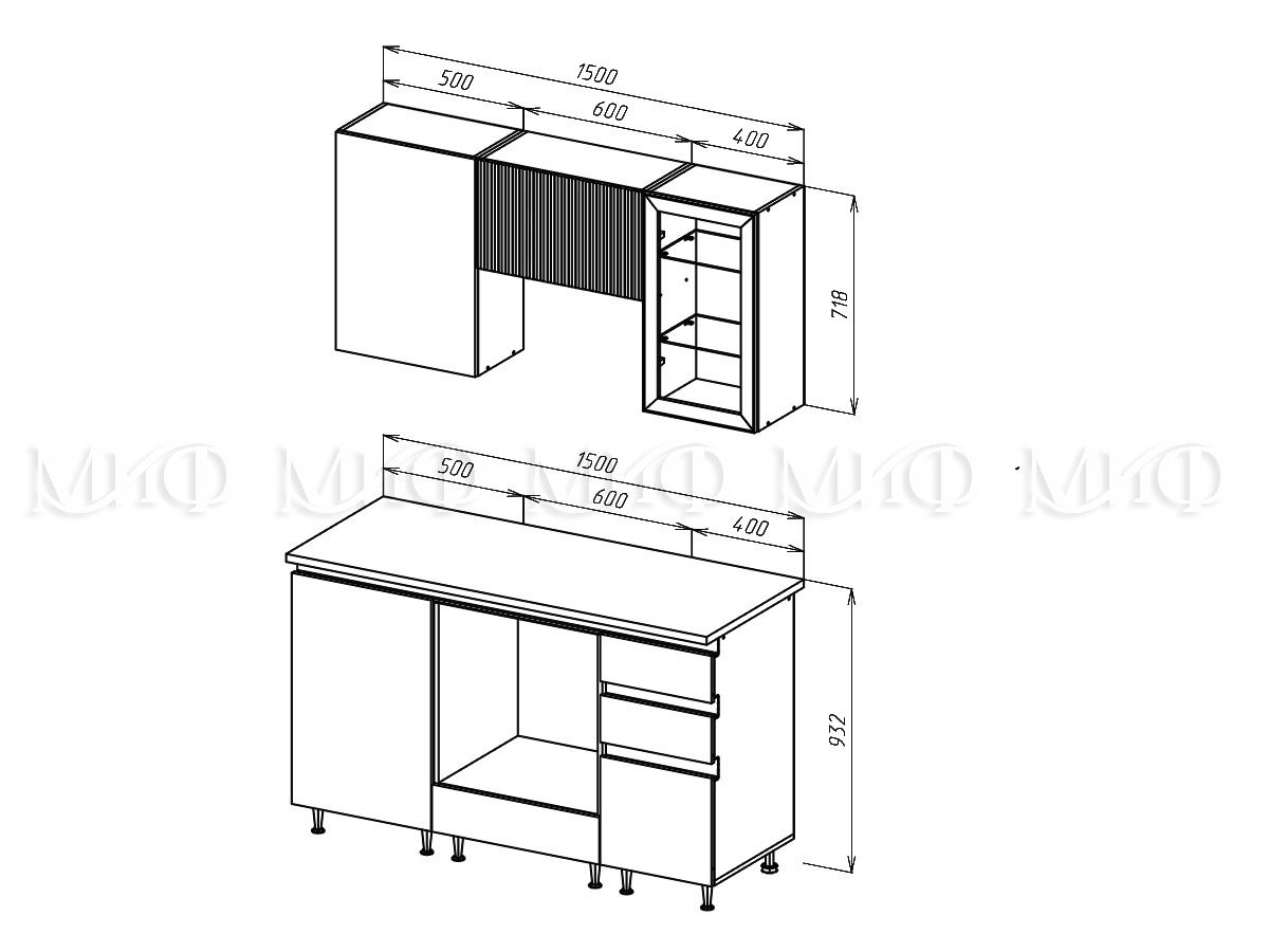 - Кухня Техно-6 1500 мм Графит/Графит софт