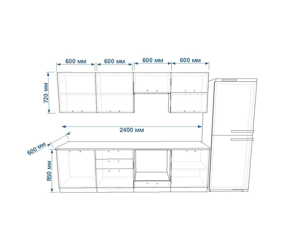 - высота верхних шкафов 720 мм