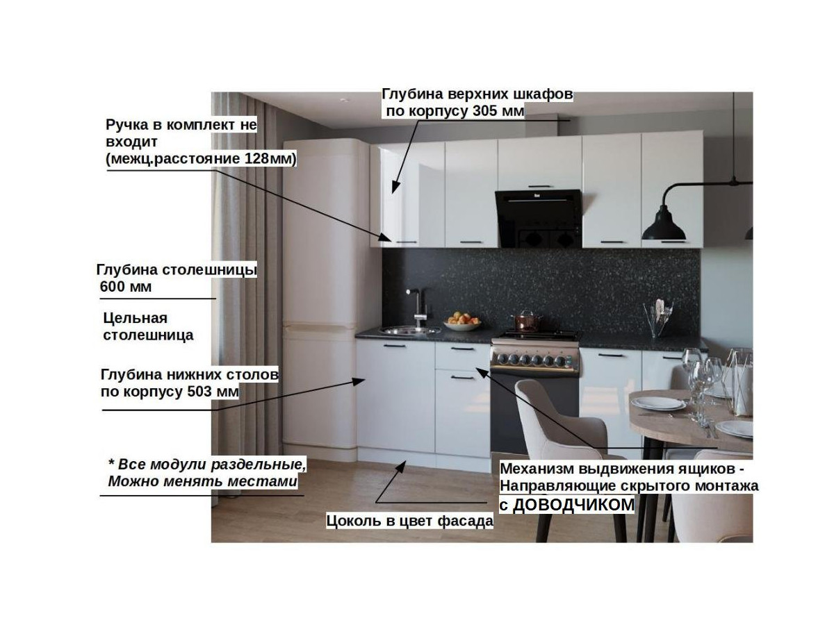 - Кухонный гарнитур арт 13 Белый глянец 2400 мм