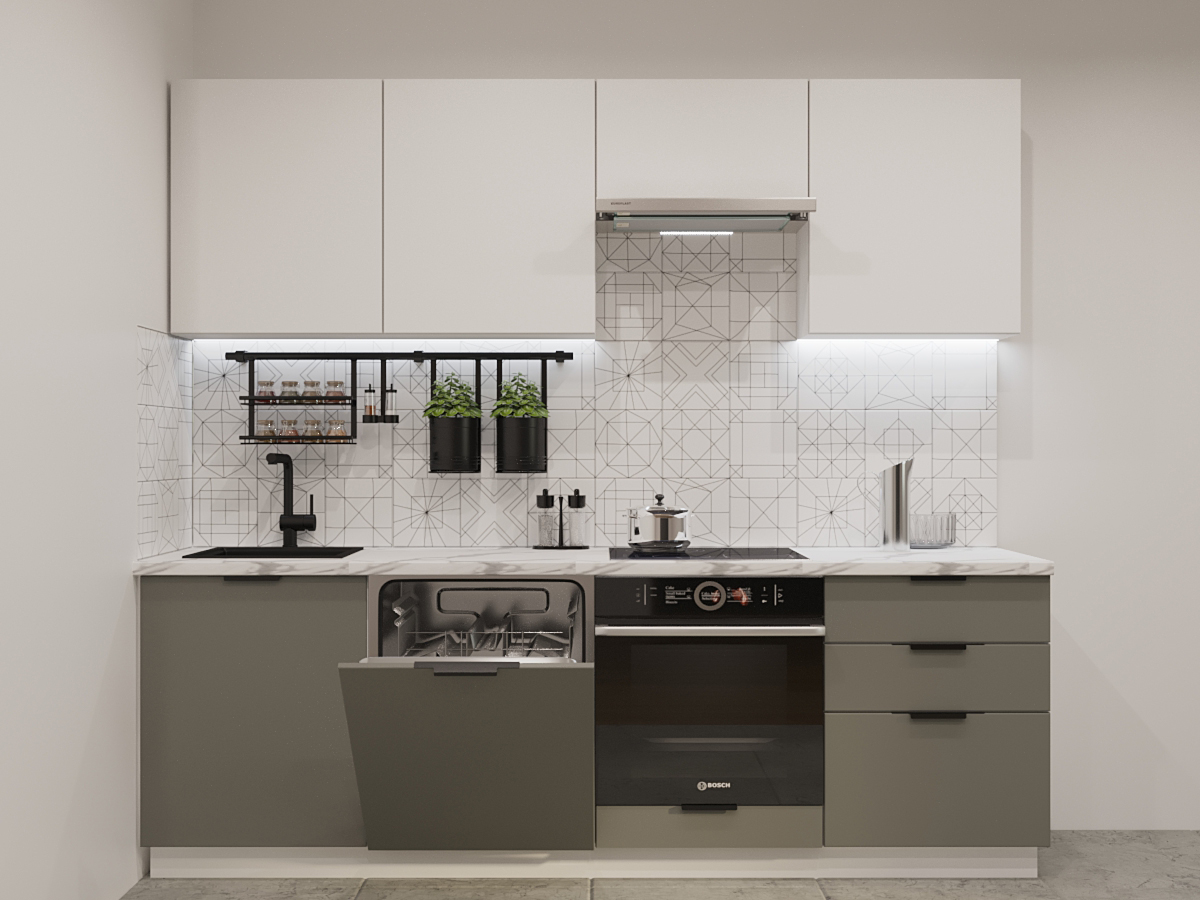- Кухонный гарнитур арт 13 Фаска Тальк Обсидиан 2400 мм