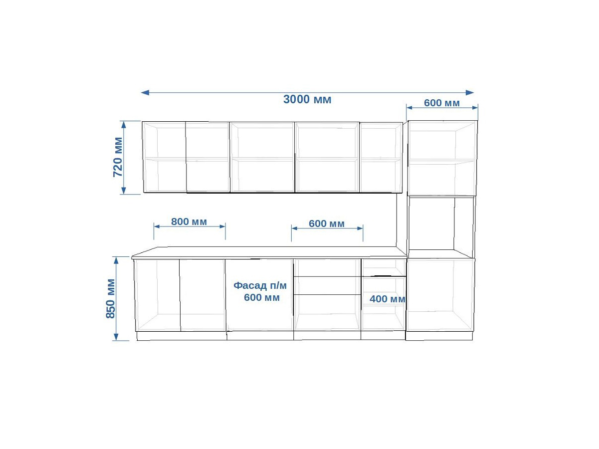 - Кухонный гарнитур арт 13 Лайн Обсидиан Пикрит 3000 мм