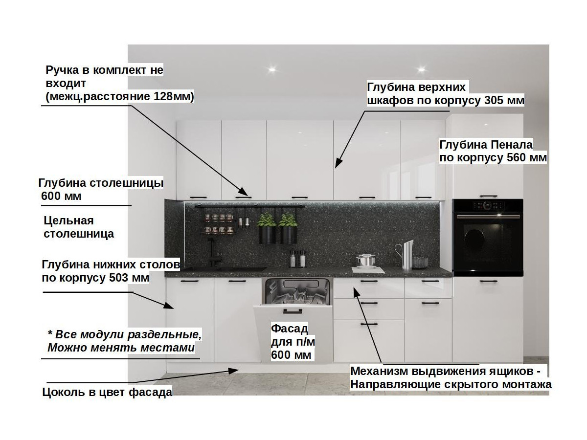 - Кухонный гарнитур арт 20 Белый глянец 3000 мм