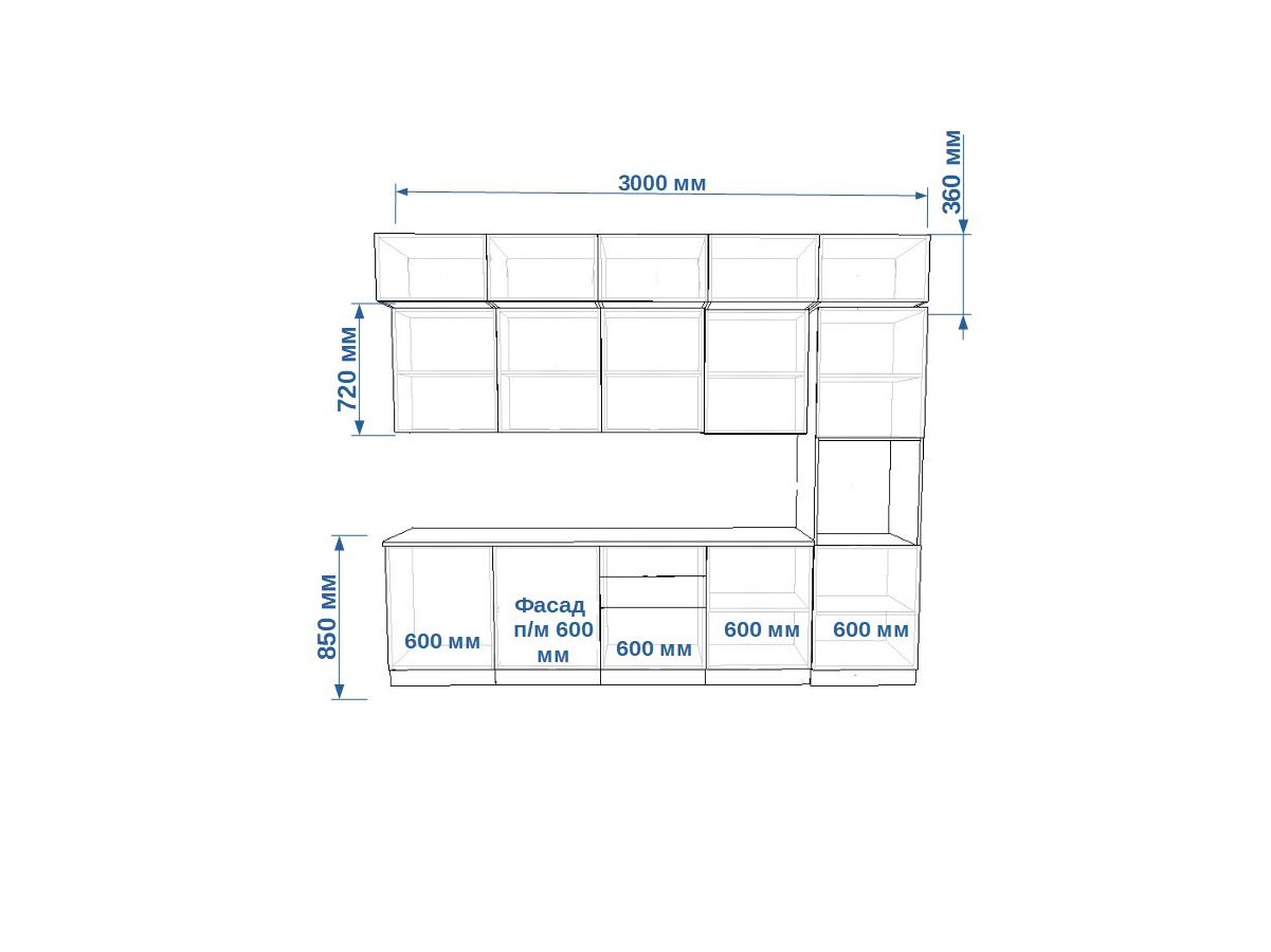 - высота верхних шкафов 720 мм