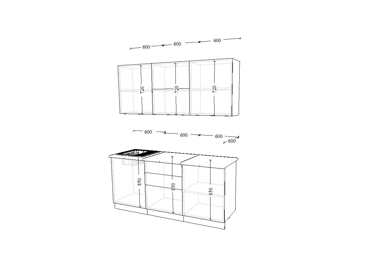 - высота верхних шкафов 720 мм