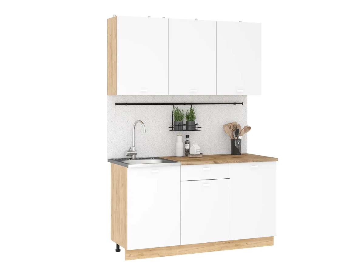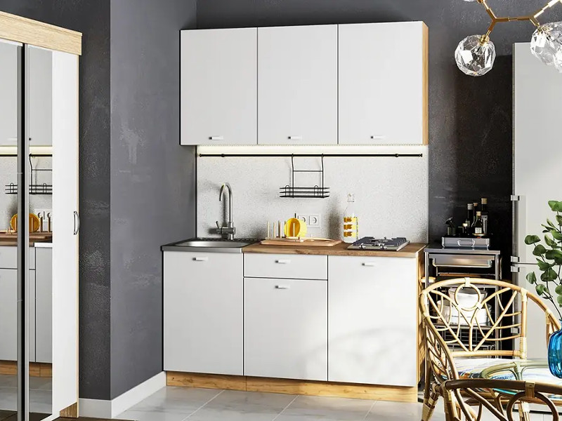 Кухонный гарнитур Дана - практичный комплект из ЛДСП длиной 1,5 метра в современном стиле спроектирован для удобного ежедневного использования.