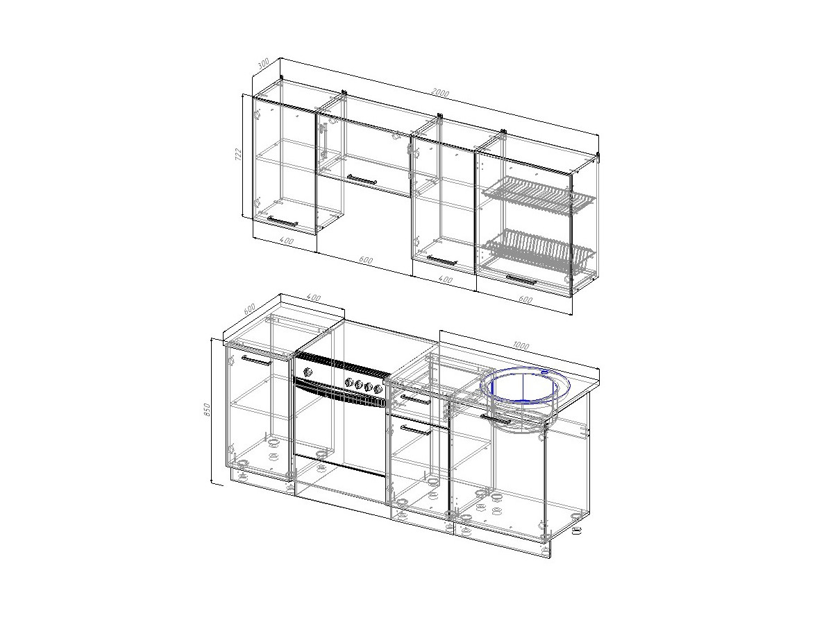 Ширина кухни: 2000 мм