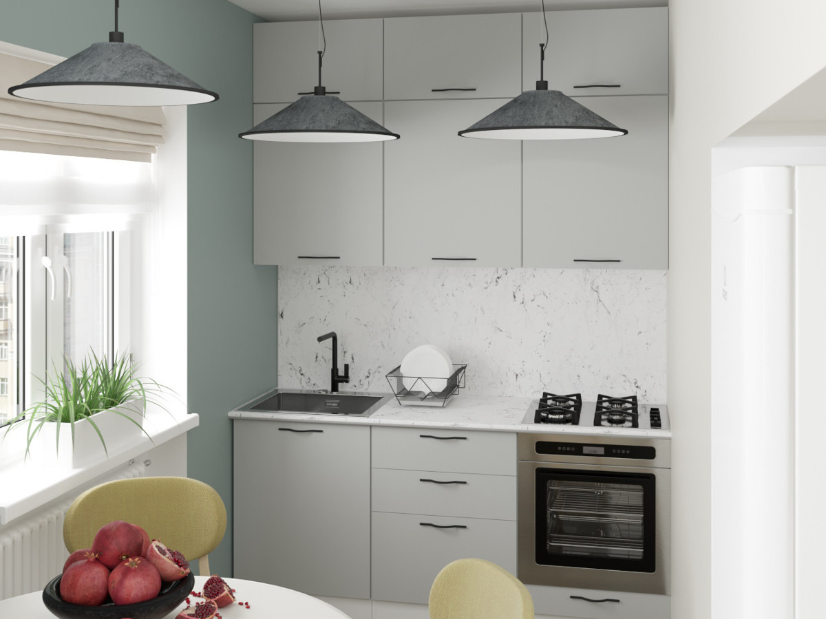 Мойка, смеситель, стеновая панель и посудосушитель в комплект гарнитура не входят.