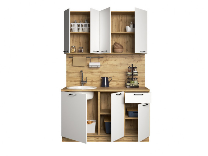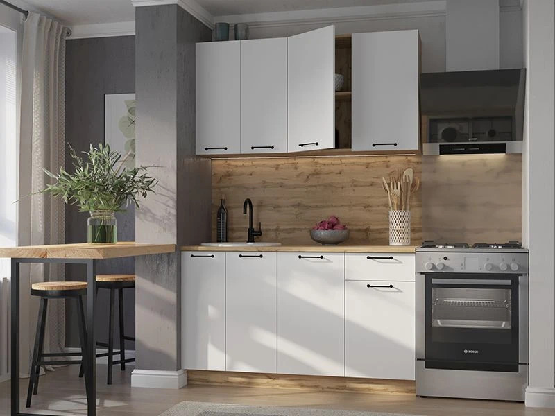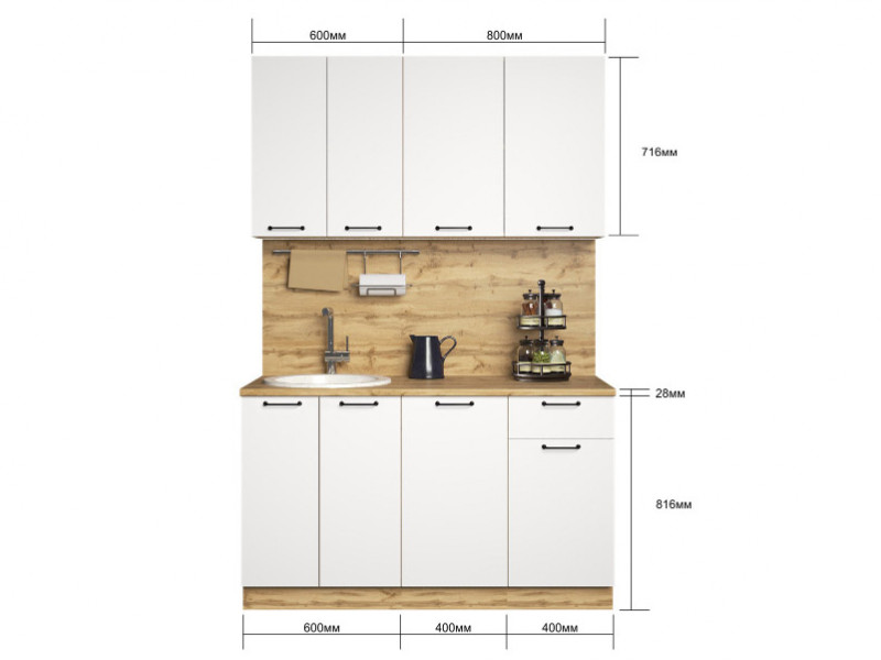 - Кухонный гарнитур Хелмер 1400 мм ЛДСП Вотан/Белый