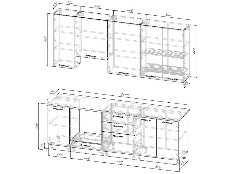 Кухонный гарнитур Изумруд 2400 (верх 950 мм)