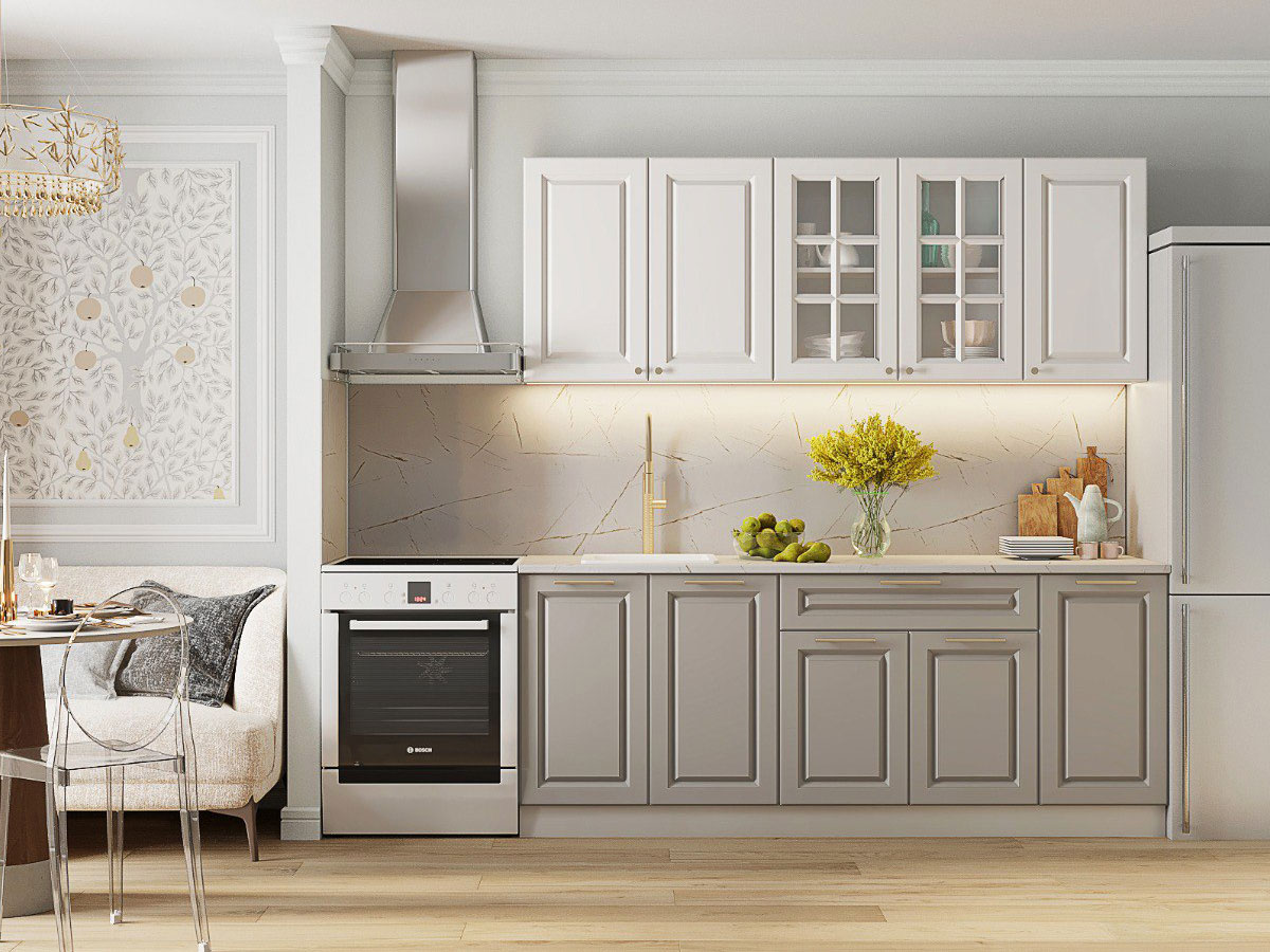 - Кухонный гарнитур Кварц Грей Софт-Милк софт 2000 мм