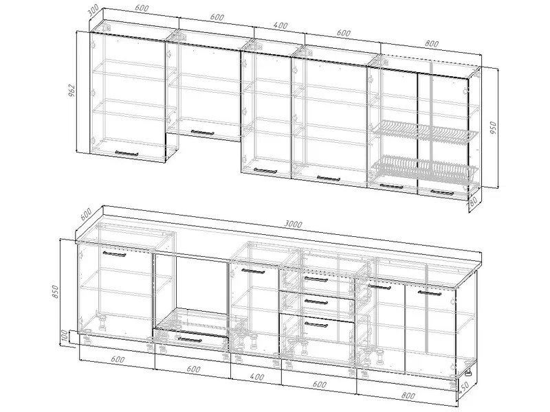 Ширина кухни: 3000 мм