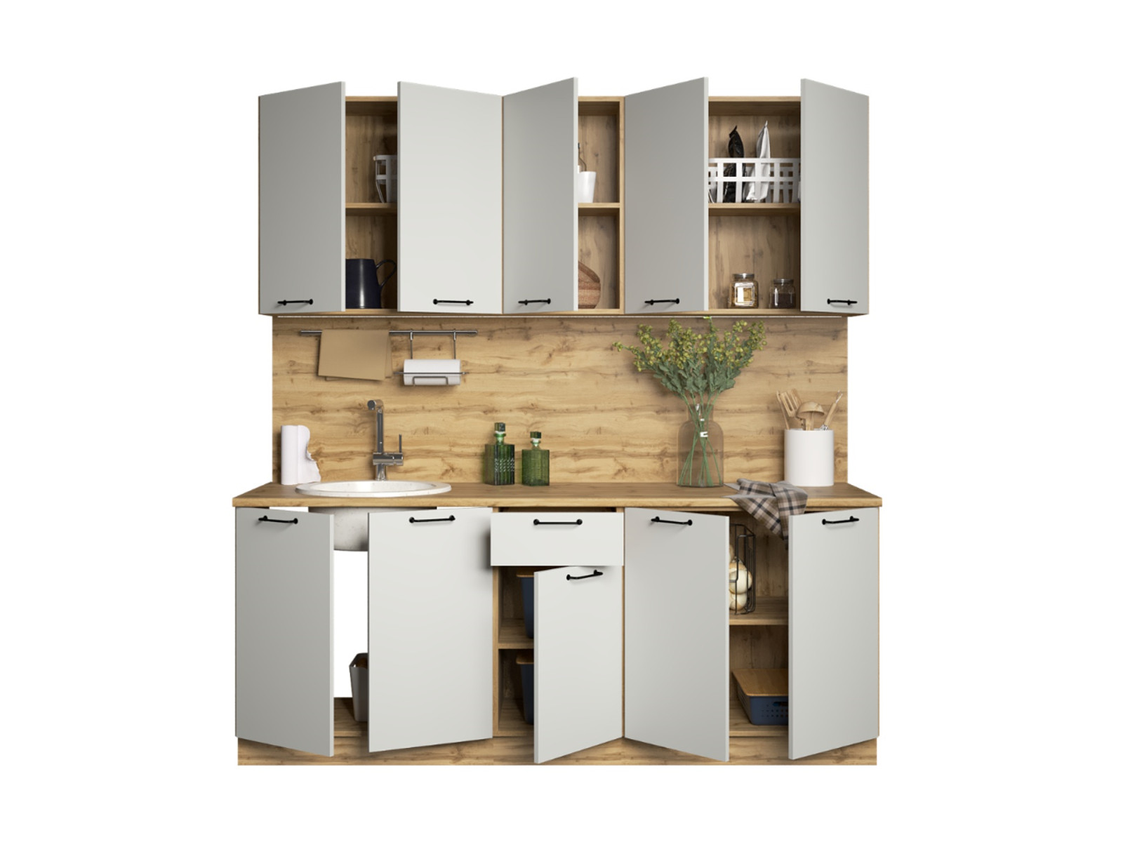 - Кухонный гарнитур Валерия 2000 мм МДФ Вотан/Серый