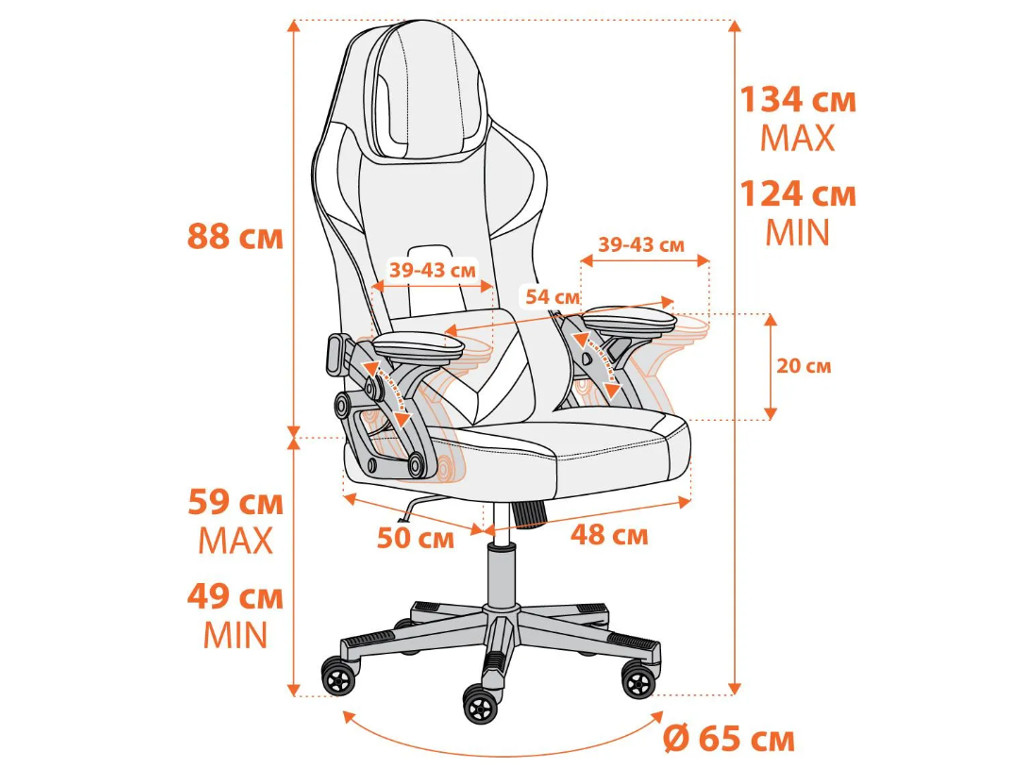 - Подлокотники с регулируемой мягкой накладкой и функцией реклайнера