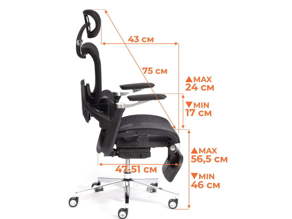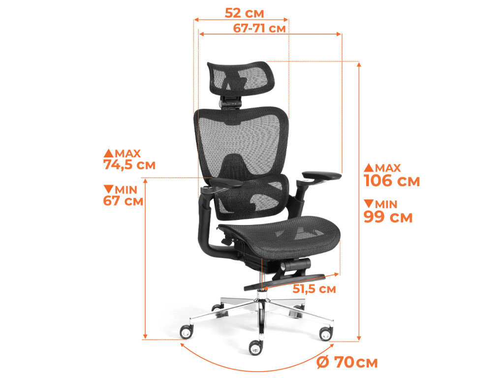 - Основание: 5-лучевая стальная крестовина с хромированным покрытием